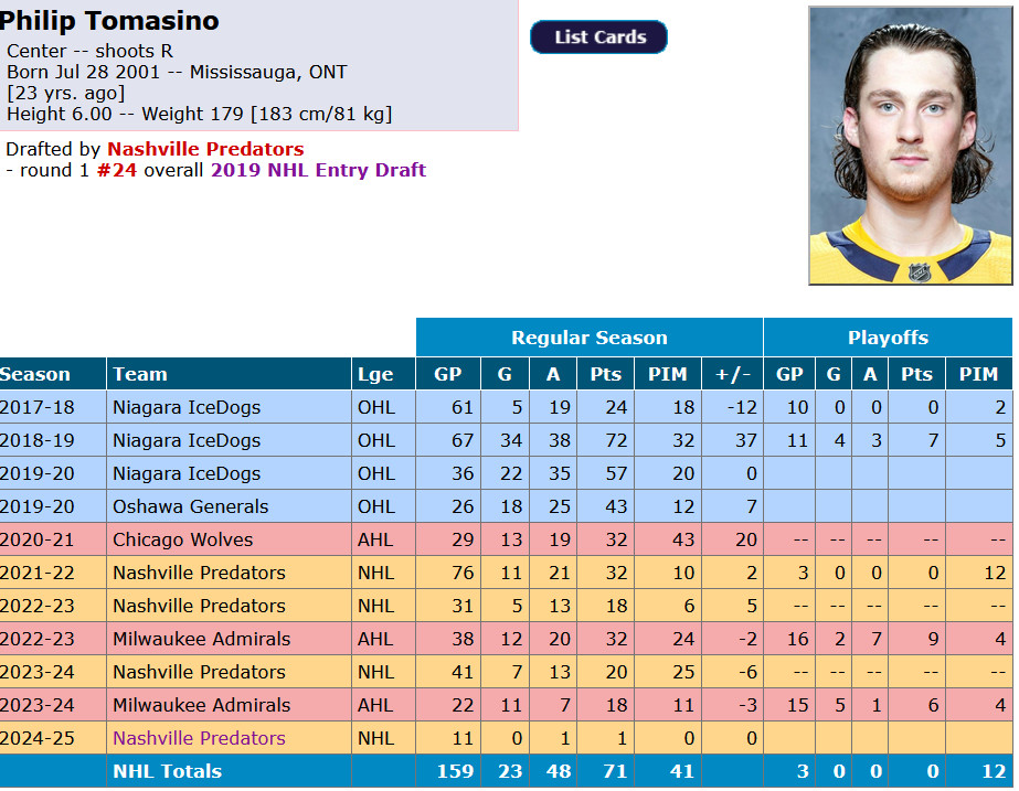 All things considered, the Preds may have rushed Tomasino to the NHL in 2021-22, his draft+3 season where he was an NHL exclusive player. They wanted and expected him to take the next step and lock into their core, but also signed or added forwards like Ryan O’Reilly, Gustav Nyquist, Steven Stamkos and Jonathan Marchessault in the past few years to make it more difficult for a young player to seize a key role on the team.