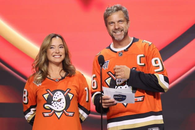 While appearing onstage, Jackson and Moreau announced Roger McQueen as the Anaheim Ducks’ first draft pick, making him the 10th player selected overall.